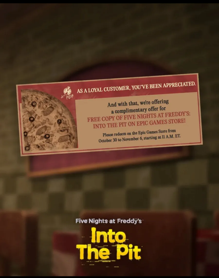 And Fnaf into the pit is coming to epic games store soon and it will be 100% off which is till October 30-November 6