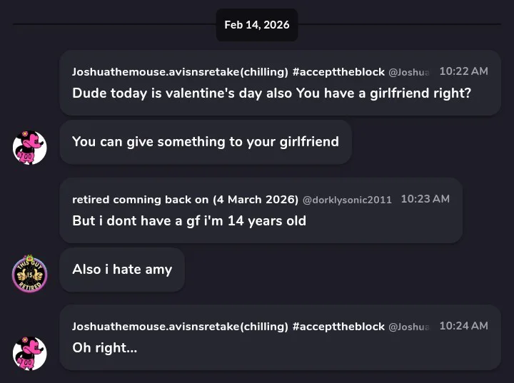 That pink hedgehog has a crush on me since shes 12 year old and i'm 14 i hate her