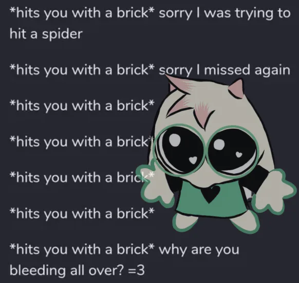 I play a lot of games and sometimes make pixel art (it’s god awful but if you want me to ill make you some for 5 bucks ;3 btw my pixil art account is EnderBoyYT2000 if you wanna look at some art) I also have hypersexuality and act very horny, if I make you uncomfortable then telllll meeeeeeee :3 My discord account is SnowconeGirl (I think lmao) my Roblox is EnderBoyYT2000 and my steam is enderboyyt2000 (I think, I keep forgetting cuz I’m dumb)