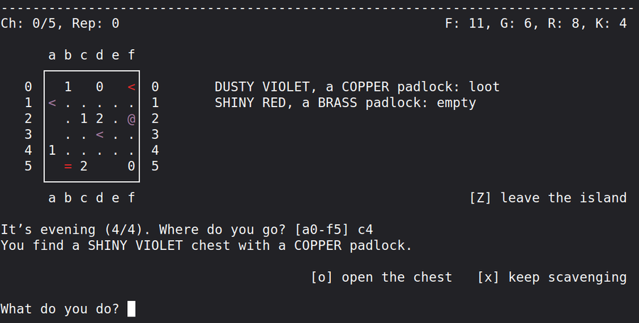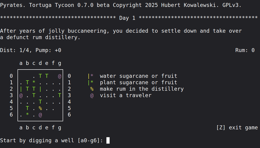 Hi, guys! I've recently uploaded to GJ my TUI pirate-themed game Pyrates. Written in Python, it was originally intended as a teaching aid for a course on software localization with gettext. By now it has evolved into a fun game in its own rights.