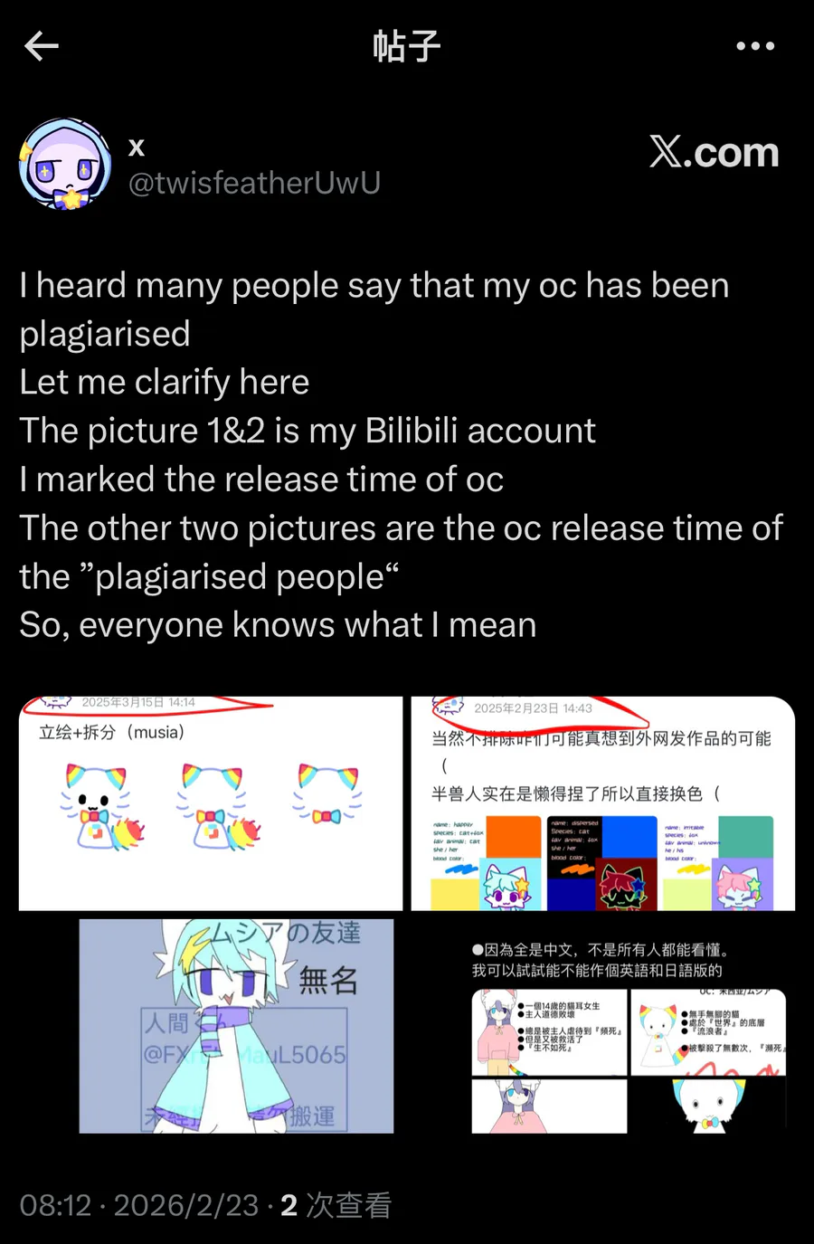 The person shown in the last two pictures has deliberately copied other people's oc, causing the victim to commit self-harm (listen to other victims)
