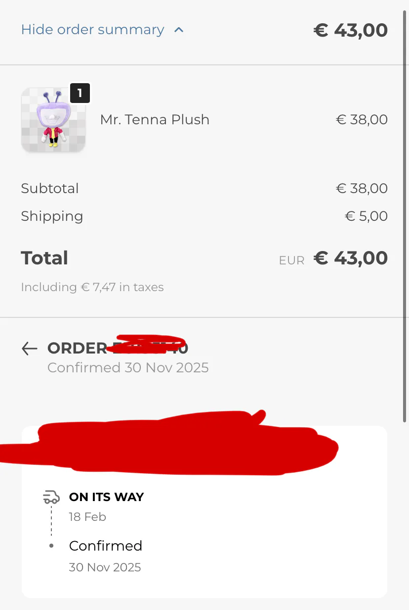 FINALLY AFTER 4 MONTHS OF WAITING I AM FINALLY RECIEVING MY TENNA PLUSH!!!!!1!1!1!1!1!!1!