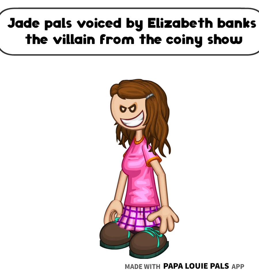 Jade pals is voiced by Elizabeth banks the villain from the coiny show