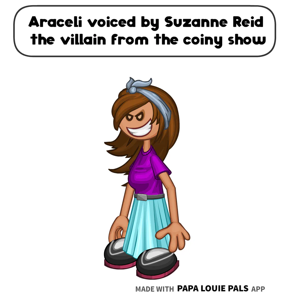 Araceli is voiced by Suzanne Reid the villain from the coiny show