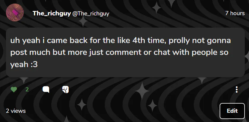 Also i just love how i can dissapear for like 3 days or longer and still get 4-7 likes per post.