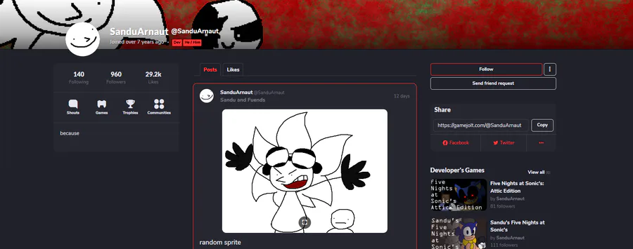 A Popular indie dev had just followed the game, respect.
