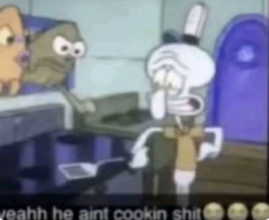 What is squidward doing bro get him outta the kitchen and back into the register man 💀💀💀