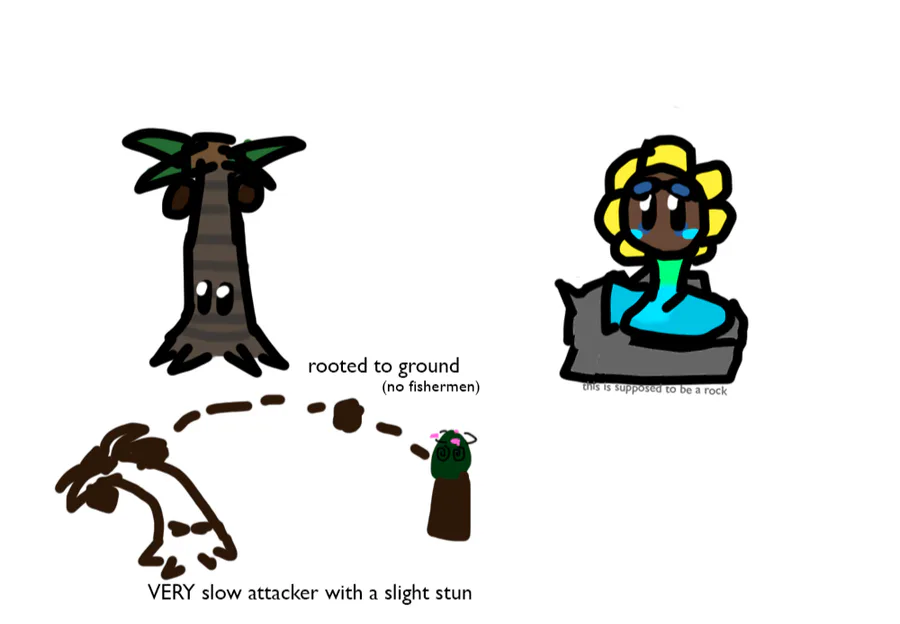 I like big wave beach and these concepts were in an old notebook that got ruined so I redrew them again ig