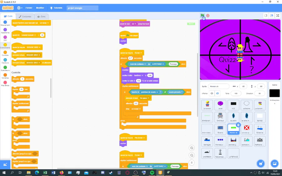 I did a LITTLE scratch game about renewable and non-renewable energies (this was a techno assignment but I wanted to do something more original) It is almost finished, I still have to do the quiz. I hope you'll like this little extract (and yes Im French)