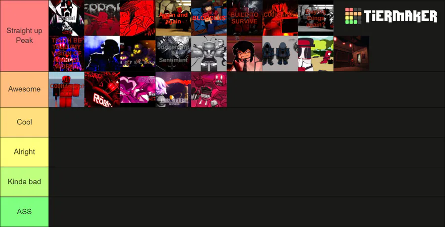 My tierlist on the current Soundtrack of Terror Realm. If you wanna do your own ranking, go here https://tiermaker.com/create/terror-realm-ost--18357126
