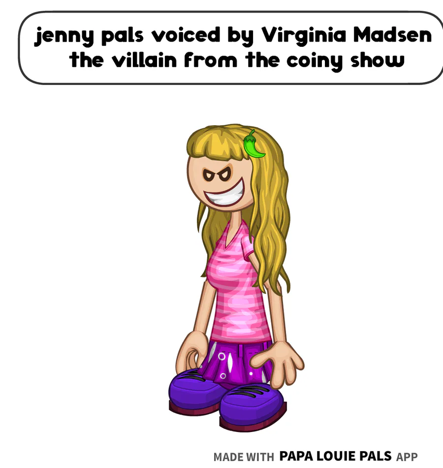 jenny pals is voiced Virginia Madsen the villain from the coiny show