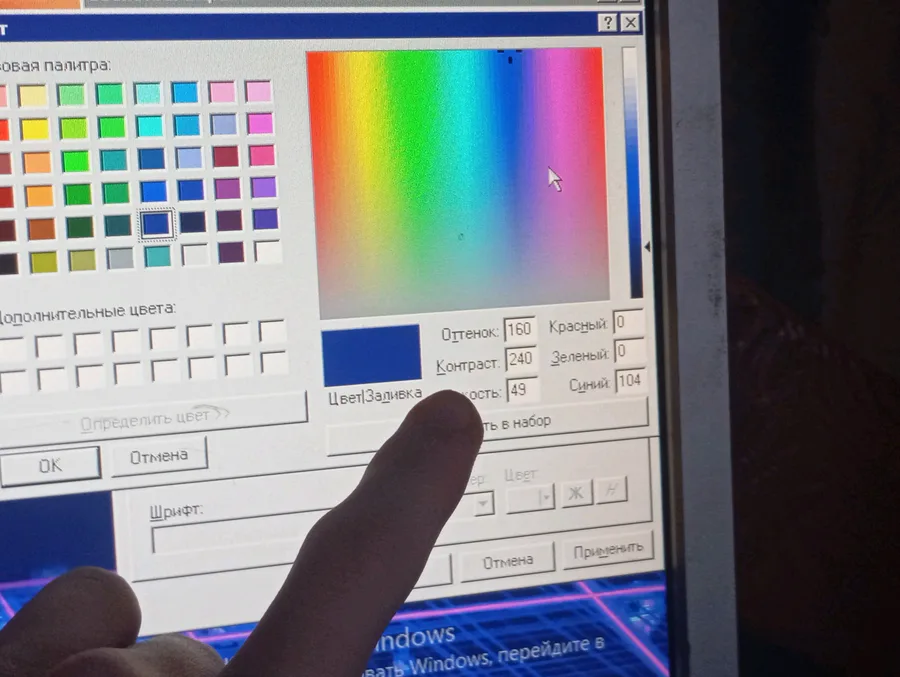 Если арт(который у меня щяс стоит как обои) имеет синий фон, заходим в Свойства: Экран, Оформление, элемент Рабочий стол, и рядом с ним есть "Цвет", нажимаем на него, выбираем темно синий цвет(ну или как тот цвет на заднем фоне арта), но можно сделать его чуть по темнее, видно на третьей картинке.