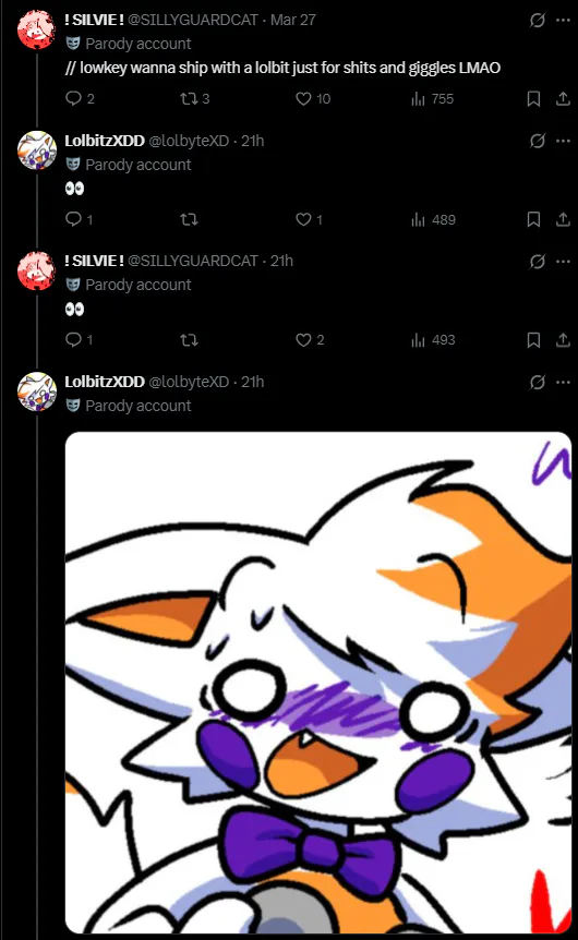 I'm so glad Frickbear's 3 is mainstream enough to get roleplay accounts and uh... these kind of threads