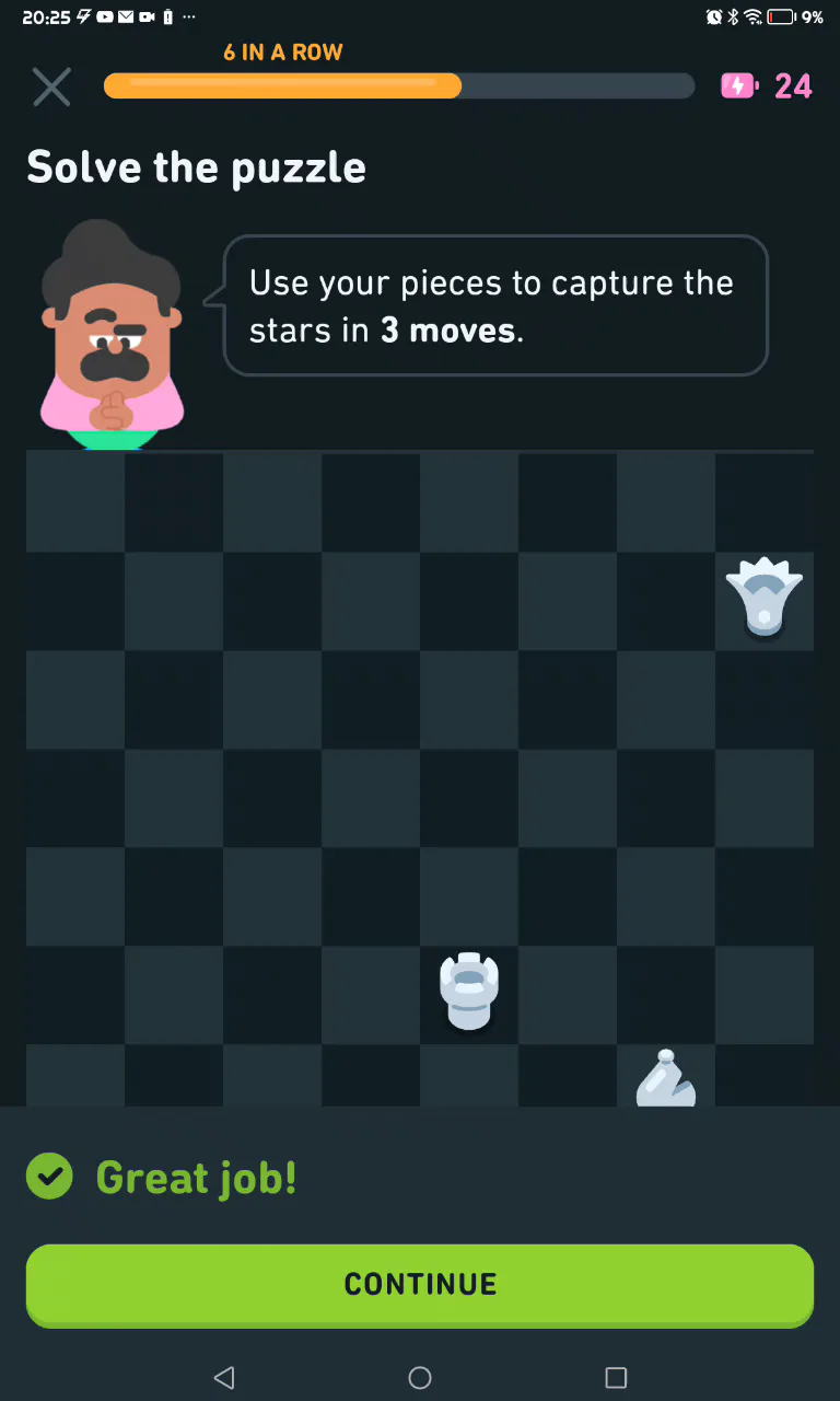 FIRST STREAK: Playing chess at duolingo at the first time