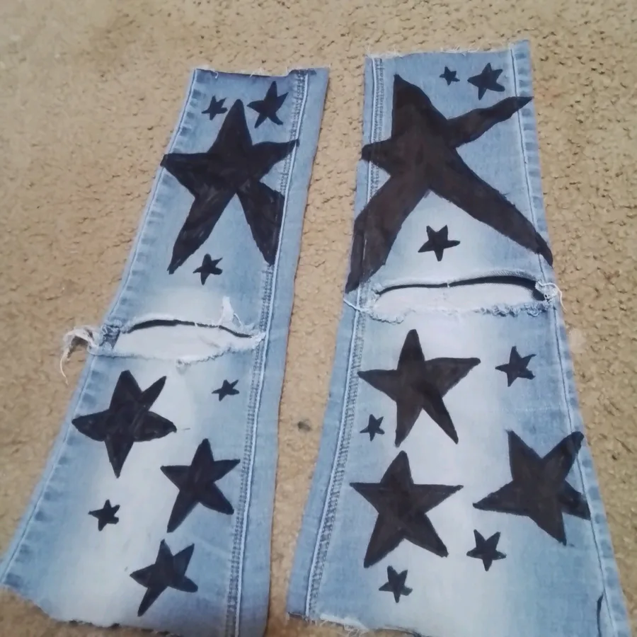 Designing my own Jean leg warmers I still have to attach some pockets on☺️ and fix the bottom and top to be more neat
