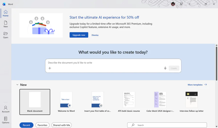Opening Microsoft Word now has this new...banner...