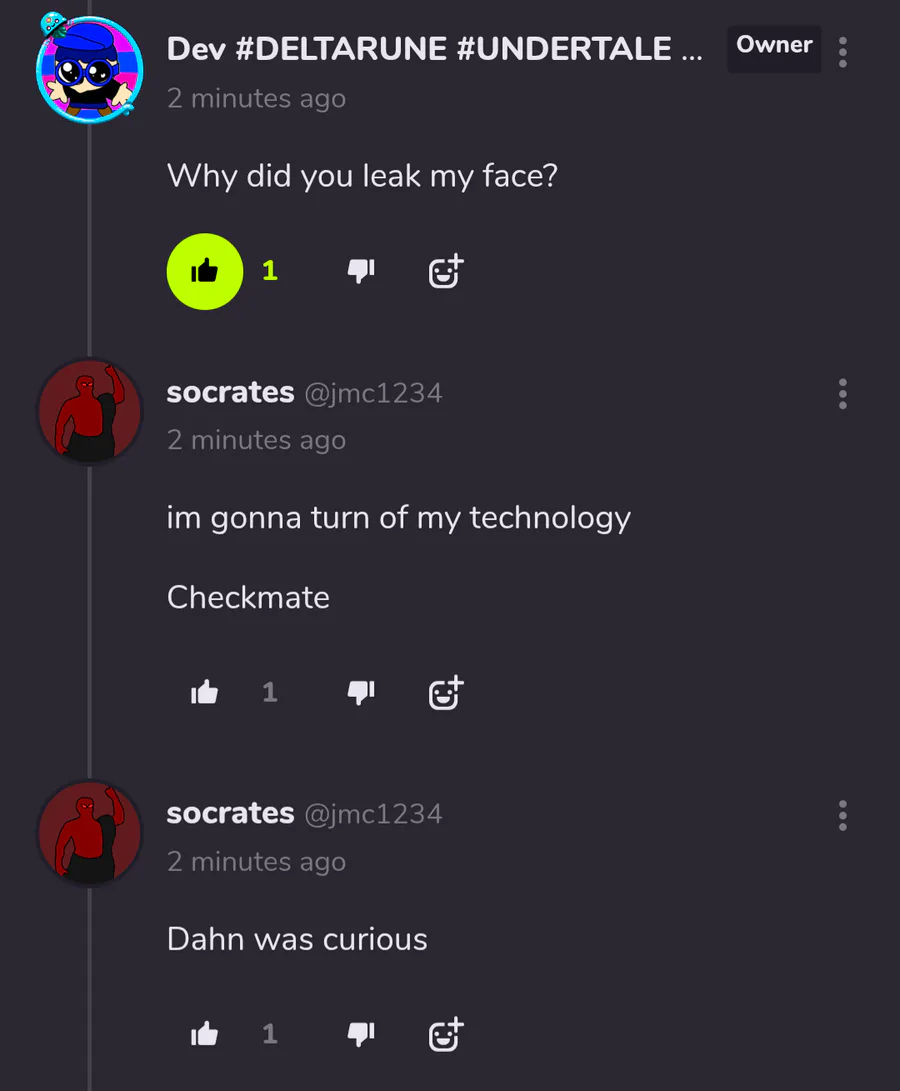 now with this screenshot i have evidence he showed my face to Dahn without permission from me first.