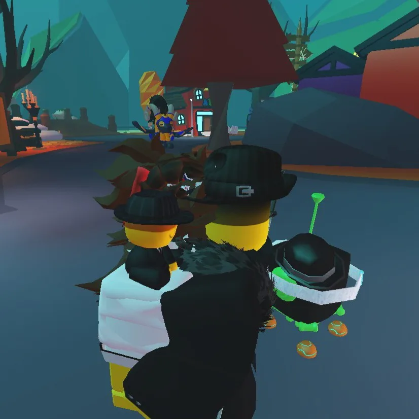 Me and my friend (she's not in game jolt). We were just fooling around in "adopt me" (I'm being held hostage by her) and ahhh we're Mafioso and Baker lol 👊👊👊