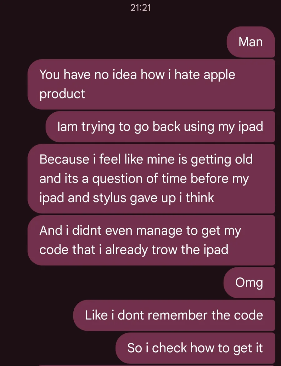 And to think that if my current tablet breaks down, I'll have to use that other piece of junk from Apple, I'm never listening to other artists' advice again.