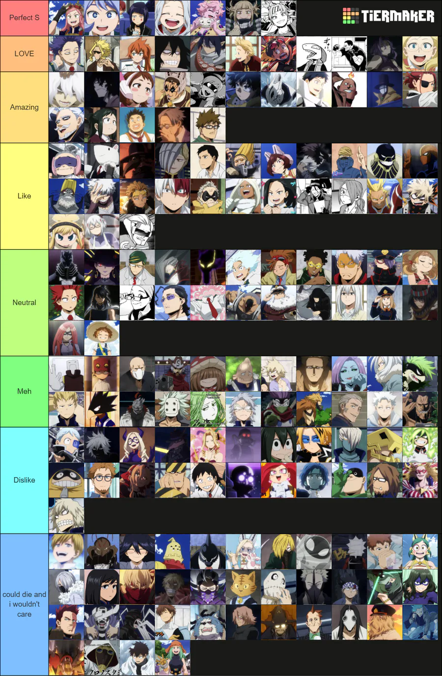 so since i missed a few characters & mha vigilantes came out a while back i remade my tierlist of every character in the series. may of missed a few again but that just means i forgot they exist lol