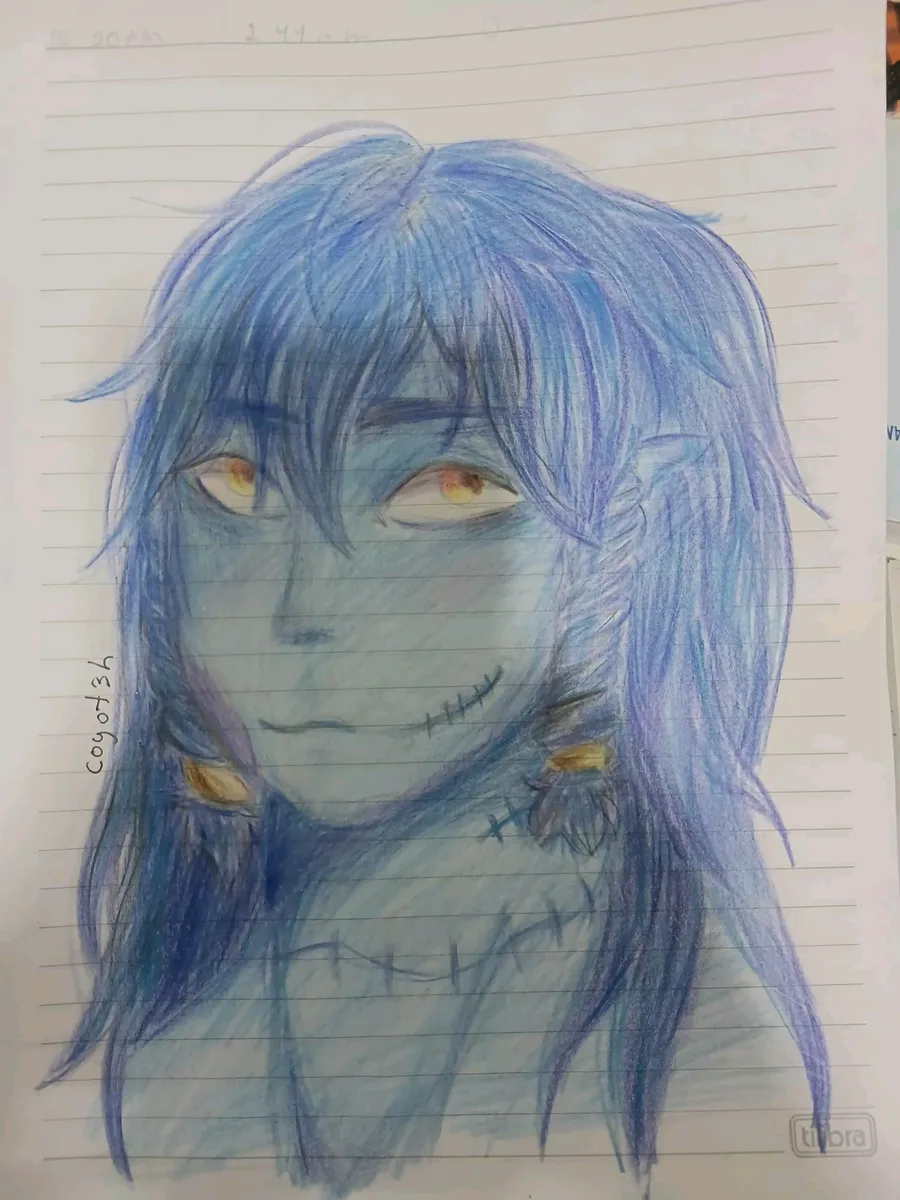He looks traumatized (I usually draw him when I'm practicing anatomy).