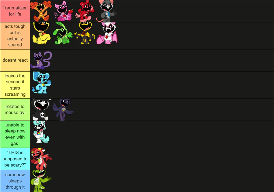 made a tier list for my takes on the critters if they were to react to mouse.avi