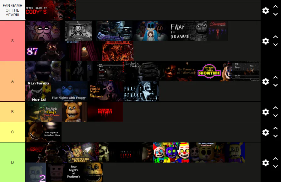My tier list of 2025 FNAF Fan Games. I know it has been like 4 months already since 2025 passed but eh still wanted to share it since i was extremely late. And yeah it's ordered