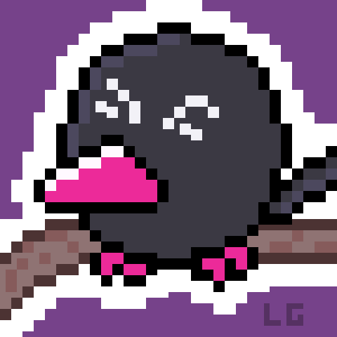 I tried my hand at some pixel art for Greedy Grackle #DrawABirdDay and it turned out a LOT better than I expected. I'm very happy with this.