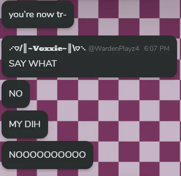 it's all fun and games until warden says something absolutely diabolical and doesn't say /sily