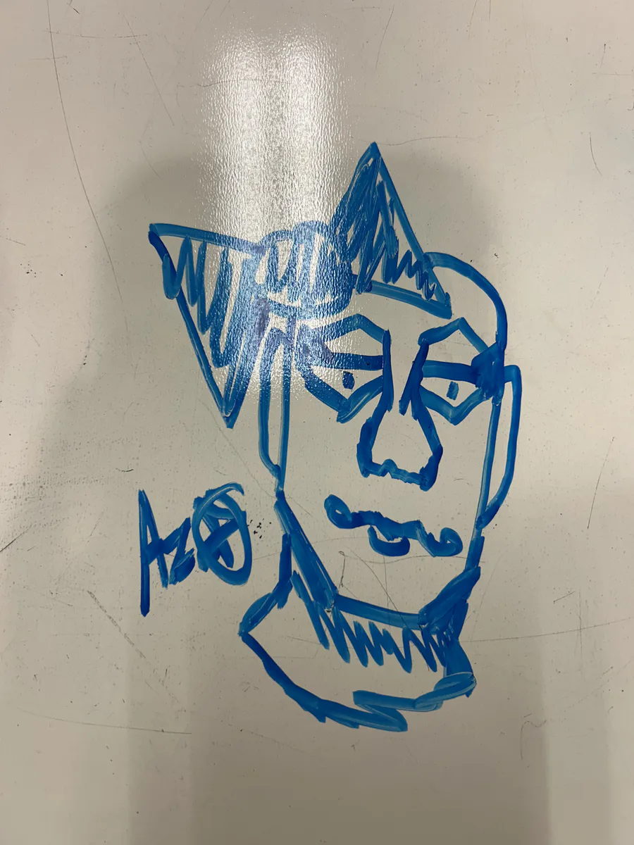 Whiteboard doodle of Dahila [hate her]
