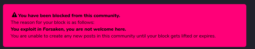 im still banned from YOUR community for 1 FUCKING YEAR like i swear i did not use any exploits i played a copy that has dev skins so please unban me for a love of god