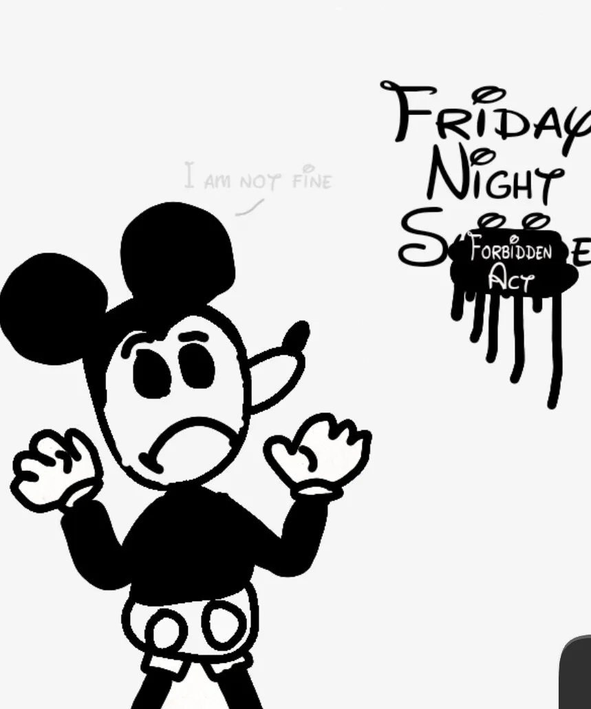Felt bored so I drew a "poster" of my favourite FNF mod ( I used "Forbidden act" because I really don't like the word it uses normally.)