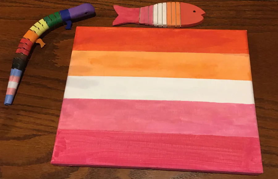 Lesbian flag + some wooden animals that I painted