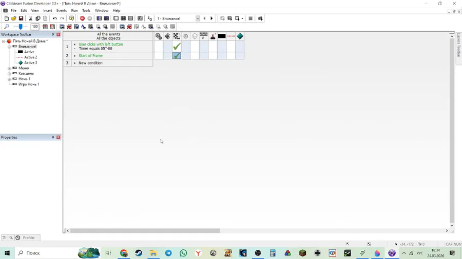 Сделано: дисклеймер, меню, кнопки: продолжить и выход, заставка к 1 ночи