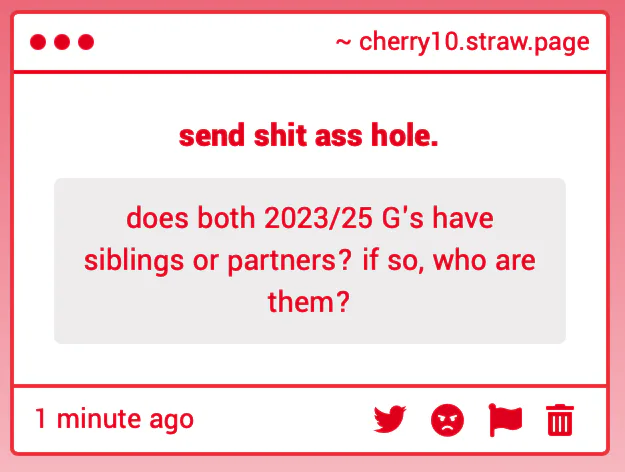 2025 G has five other siblings. 3 sisters and 2 brothers and in an alt canon, is dating D cuz its funny