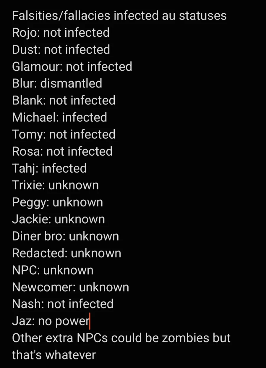 This isn't exactly canon for the au itself because it's really up for interpretation but this is my thoughts (I didn't know what to do for the ones that say unknown ok?) :>