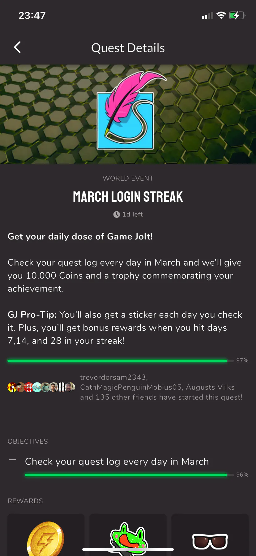 It’s almost midnight in my area, so I’m about to get this quest completed!