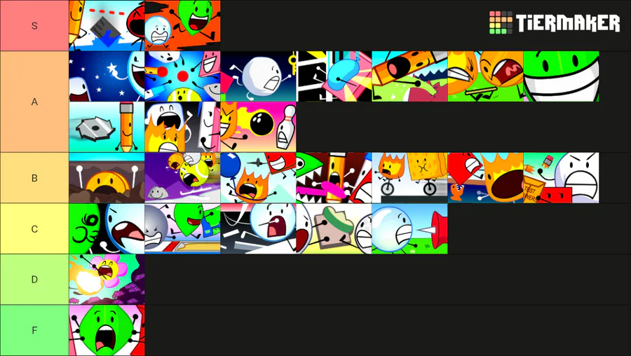 BFDI Season 1 Tierlist