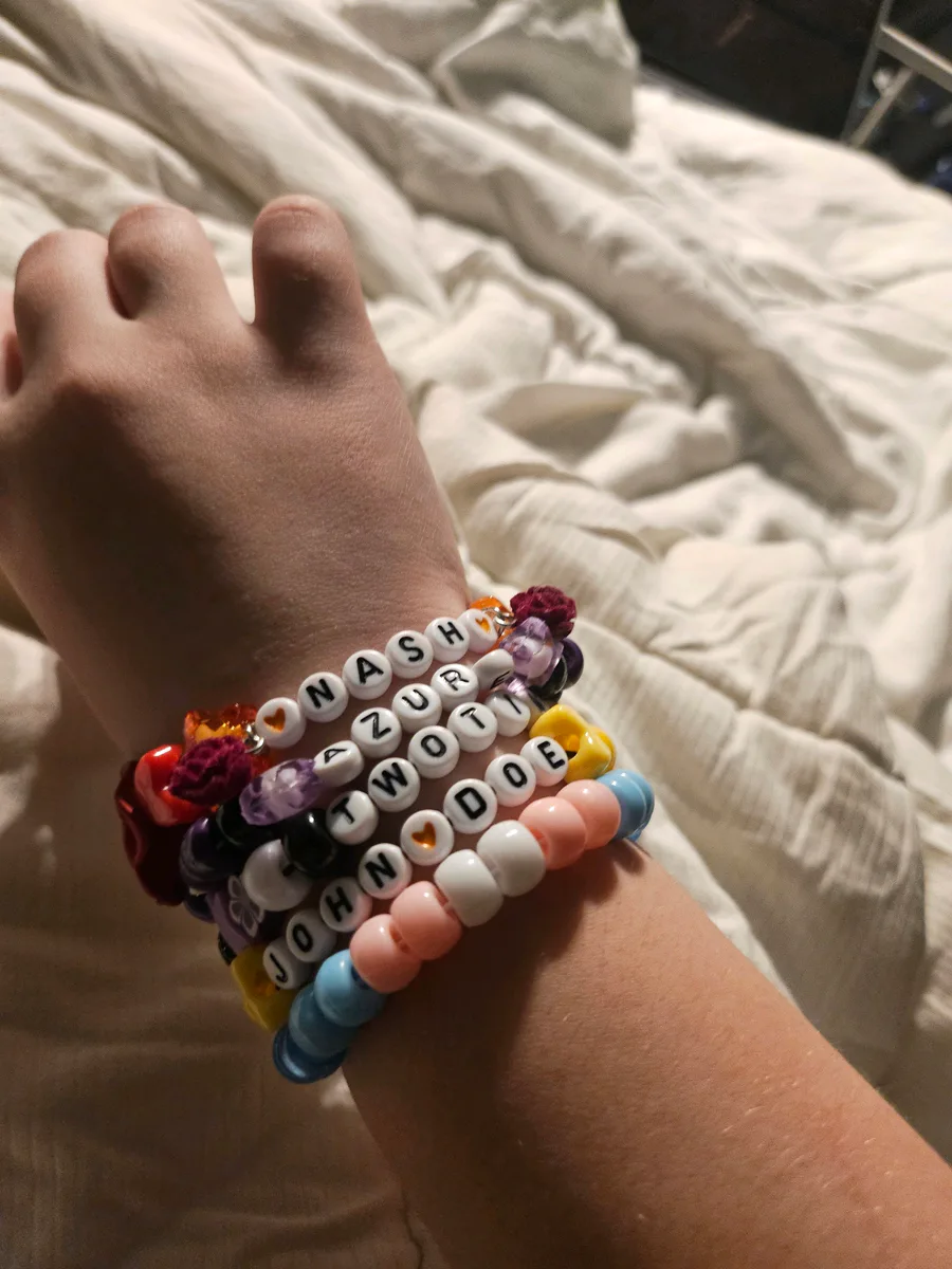 hEHEHHEH 🥹🥹 (they both just barely fit on one wrist so I might have to put dust on the other one because his is really irritating my wrist rn