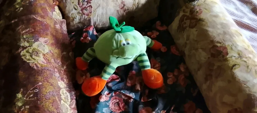 It turned out that the stuffed animal he thought was a pumpkin was actually a green tomato.