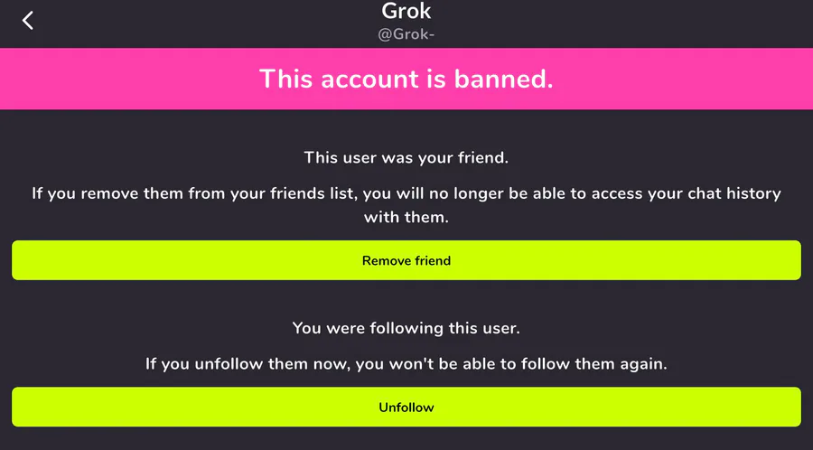 ATTENTION #TEAMGROK They banned him….