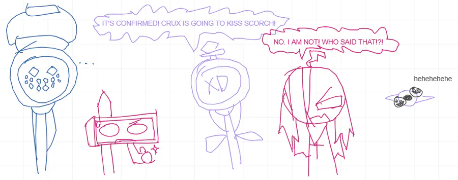 dumb little deadline comic based on one of Mr Unknown's drawings (with I guess my interpretations(?) of the characters).