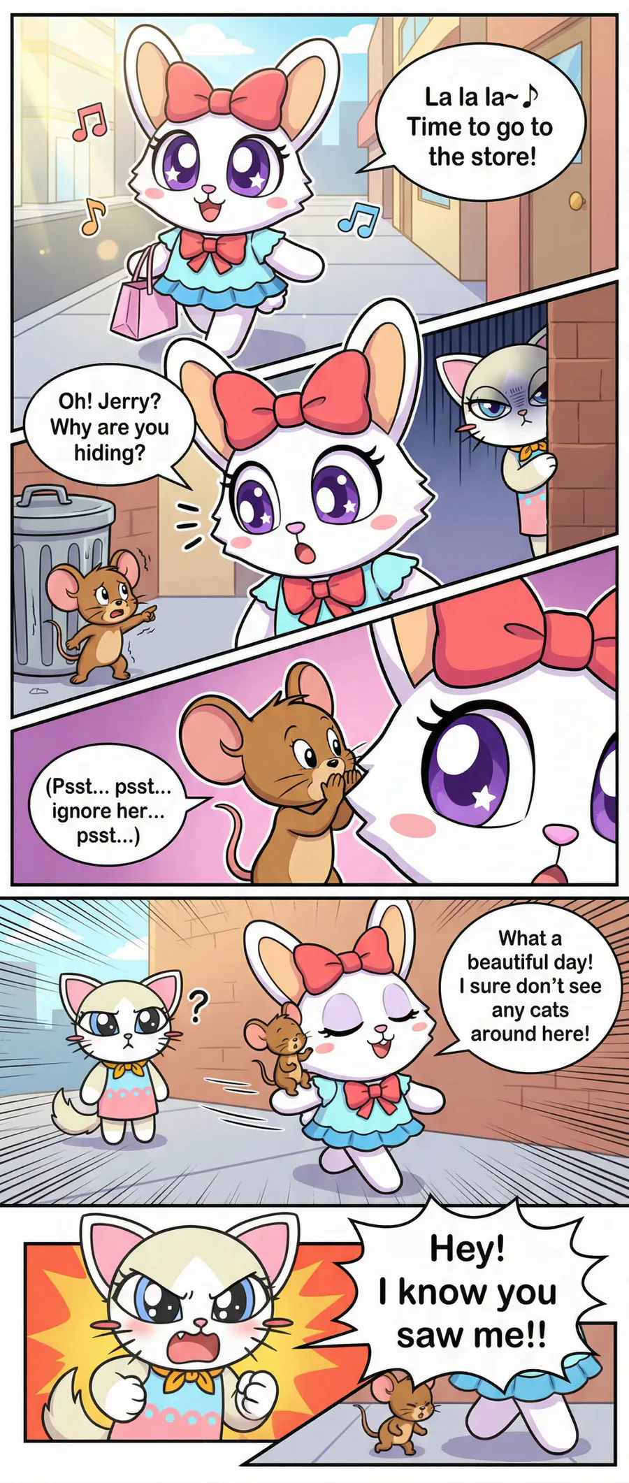 A small ai shit post comic of tom and Jerry and pretty blood collab