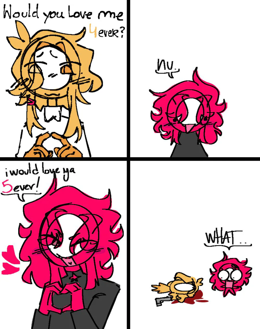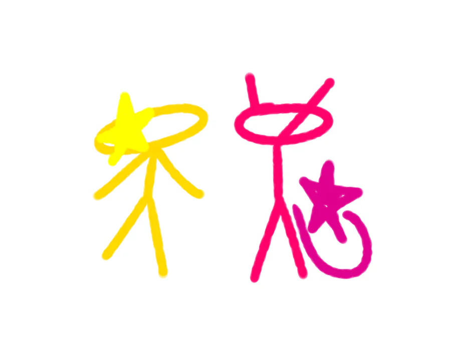 I should have made an art but honestly im pretty much unmotivated to do so (sorry for that...) thats why in this post (unlike the one from last year) i decided to put old drawings ive made around last year related to her and our ocs Ray (hot pink one, mine) and Star (yellow one, hers) who were the first starters of topics for us to get closer to each other