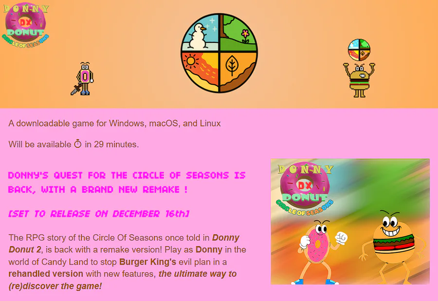 Only 30 minutes left until Donny Donut : Circle of Seasons DX releases!