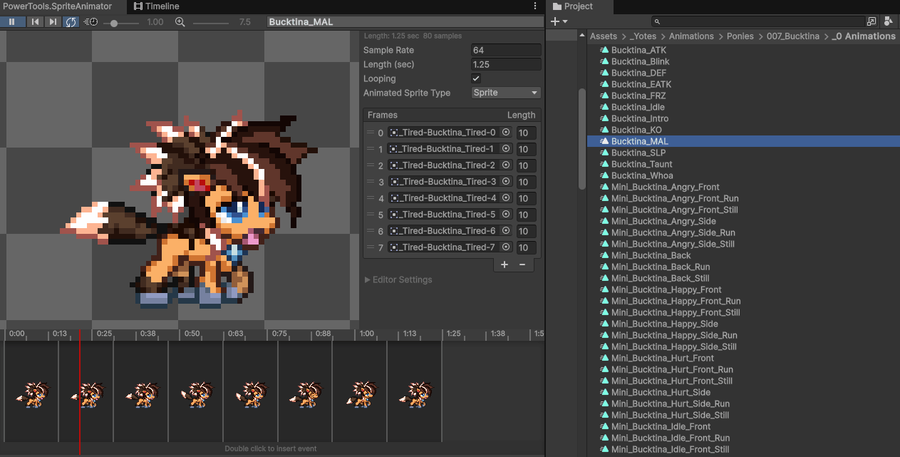 Each pony has DOZENS of expressive animations. That's why it takes so long to get each one from single concept sprite to finished in-game. (Aseprite's the tool used to get these pixels moving around so nicely.)