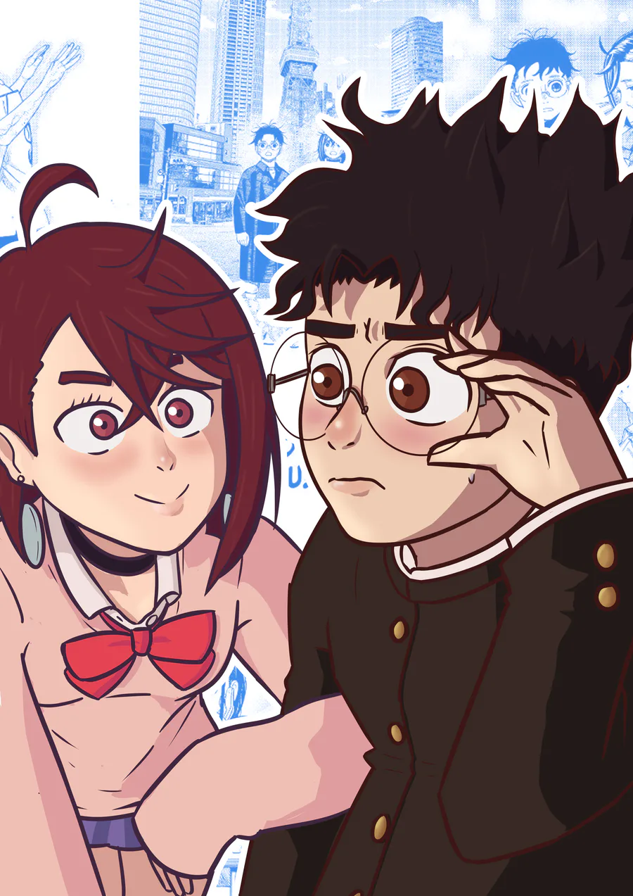 A small drawing of Momo and Okarun o(* ̄▽ ̄*)o