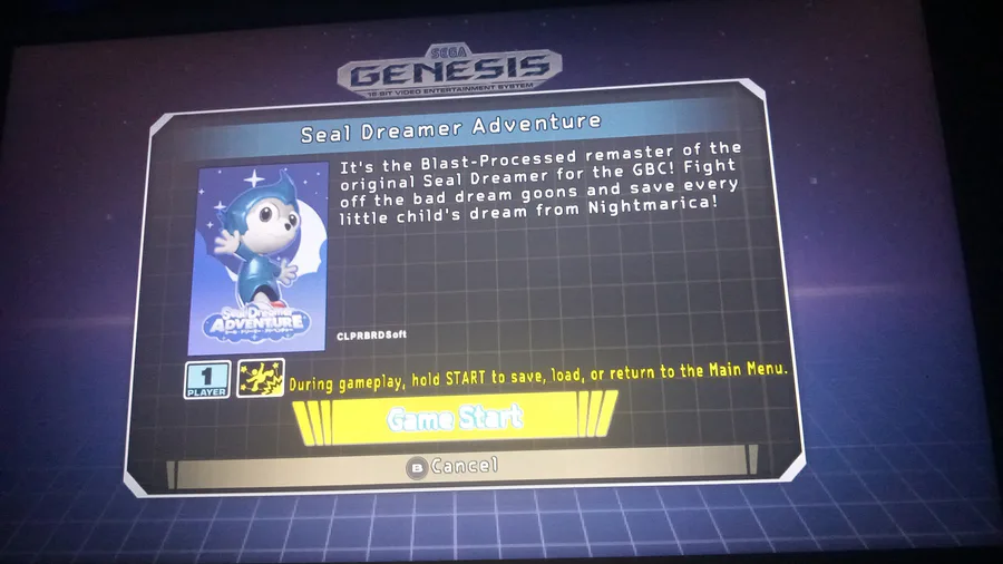 My custom Sega Genesis game, running on the Genesis Mini.