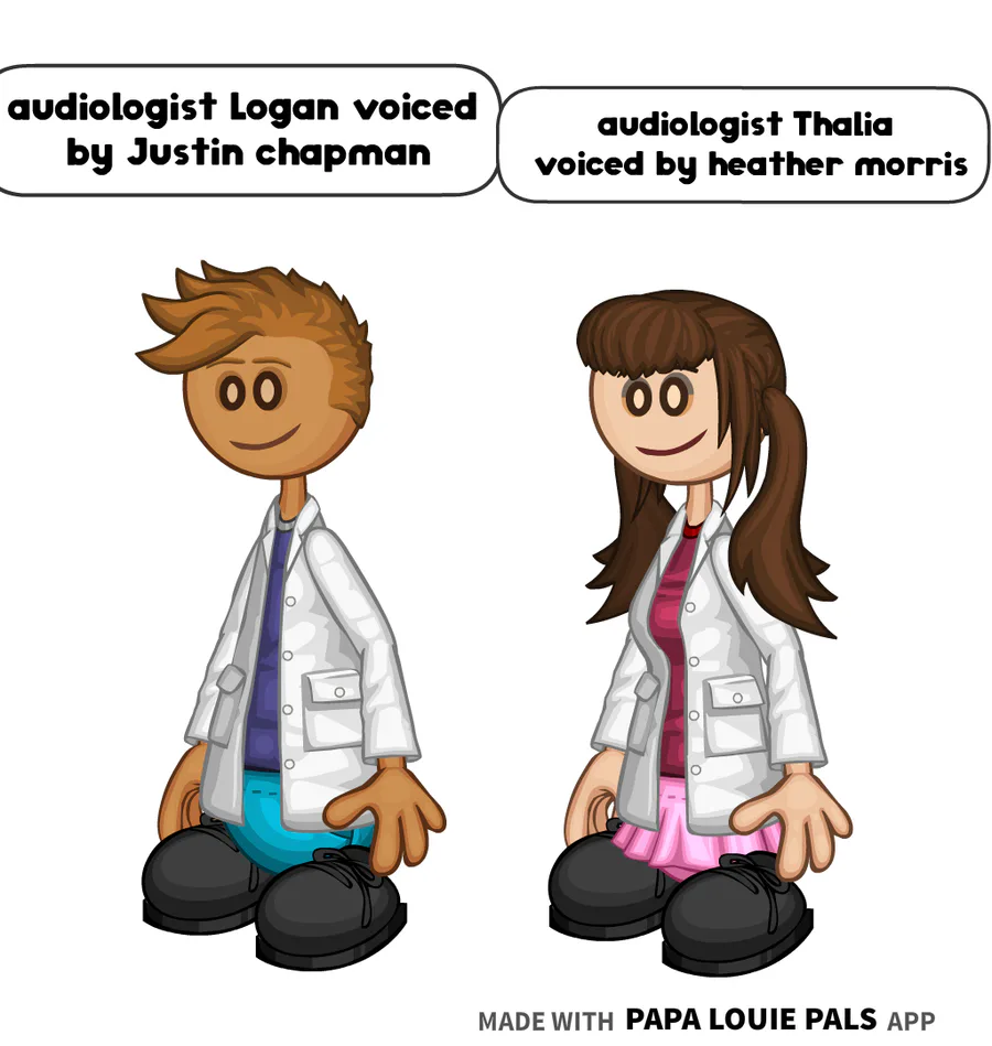 audiologist Logan is voiced by Justin chapman audiologist Thalia is voiced by heather Morris from the coiny show