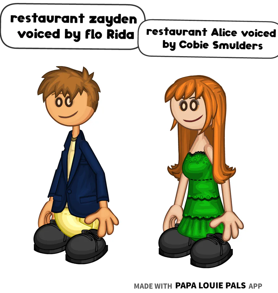 restaurant zayden is voiced by flo Rida restaurant Alice is voiced by Cobie Smulders from the coiny show